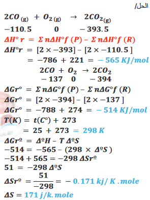 احسب مقدار التغير في انتروبي التفاعل القياسية ΔSºrللتفاعل الأتي عند الظروف القياسية