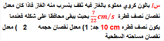 جد:1) معدل نقصان حجمه2) معدل نقصان مساحته السطحي