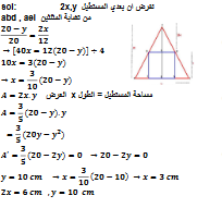 /abcمثلث فيهab=ac,ad⊥ bc,bc=12 cm ,ad=20cmجد بعدي اكبر مستطيل يمكن رسمه داخل هذا المثلث