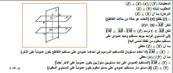 س3/برهن ان المستوي العمودي على احد مستوين متوازيين يكون عمودي على الأخر أيضاً.